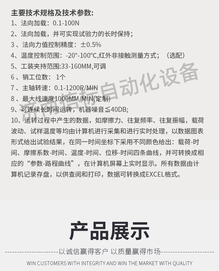 濟南信標(biāo)自動化設(shè)備有限公司主要生產(chǎn):動靜態(tài)萬能疲勞試驗機,接骨板彎曲試驗機,縫合線拉伸疲勞試驗機,髖膝關(guān)節(jié)磨損試驗機,電子萬能試驗機、液壓萬能試驗機、巖石三軸、四軸,電液拉力試驗機,材料試驗機,高低溫蠕變,高低頻疲勞,拉伸、扭轉(zhuǎn)、杯突等二十多個系列兩千多個的品種。