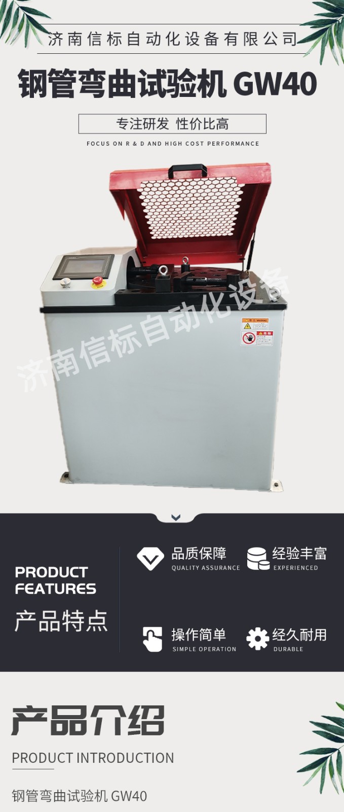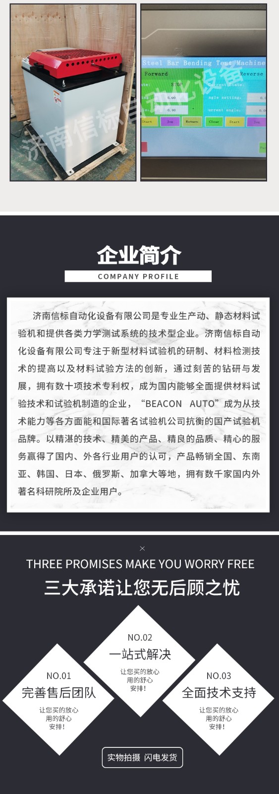 濟南信標自動化設備有限公司主要生產:動靜態萬能疲勞試驗機,接骨板彎曲試驗機,縫合線拉伸疲勞試驗機,髖膝關節磨損試驗機,電子萬能試驗機、液壓萬能試驗機、巖石三軸、四軸,電液拉力試驗機,材料試驗機,高低溫蠕變,高低頻疲勞,拉伸、扭轉、杯突等二十多個系列兩千多個的品種。