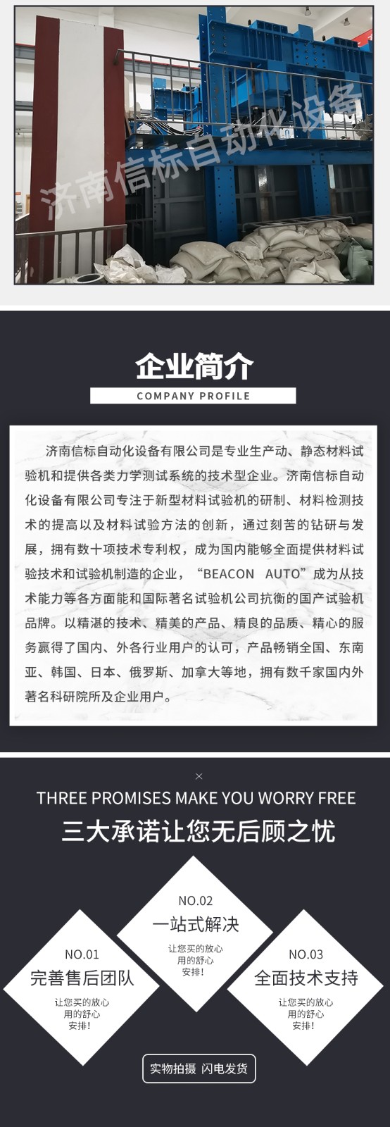濟南信標自動化設備有限公司主要生產:動靜態萬能疲勞試驗機,接骨板彎曲試驗機,縫合線拉伸疲勞試驗機,髖膝關節磨損試驗機,電子萬能試驗機、液壓萬能試驗機、巖石三軸、四軸,電液拉力試驗機,材料試驗機,高低溫蠕變,高低頻疲勞,拉伸、扭轉、杯突等二十多個系列兩千多個的品種。