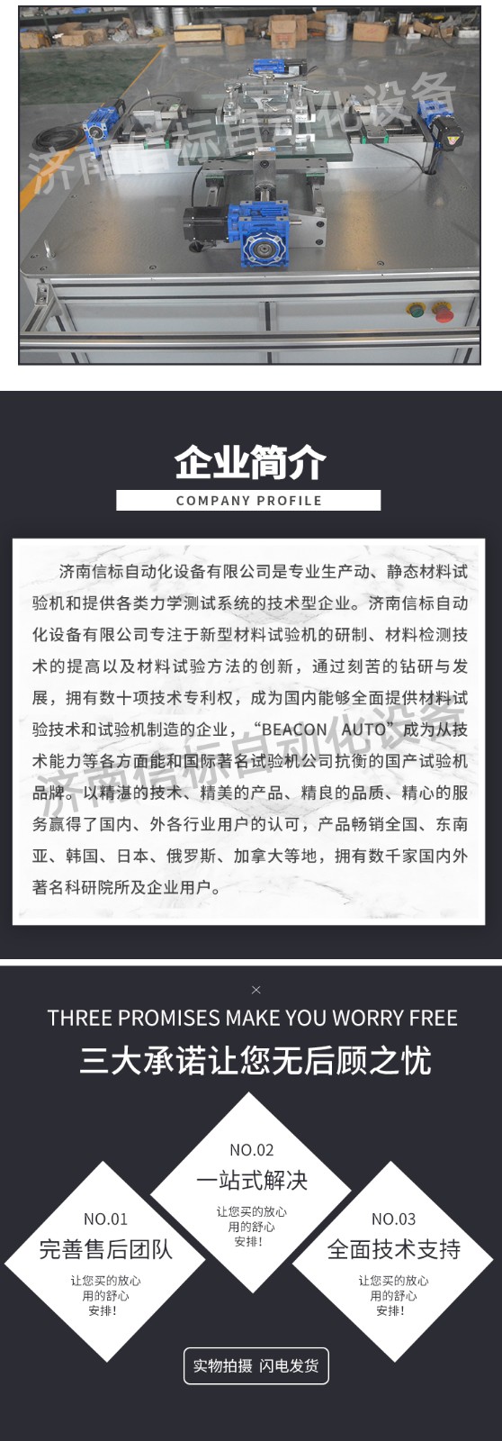 濟南信標自動化設備有限公司主要生產:動靜態萬能疲勞試驗機,接骨板彎曲試驗機,縫合線拉伸疲勞試驗機,髖膝關節磨損試驗機,電子萬能試驗機、液壓萬能試驗機、巖石三軸、四軸,電液拉力試驗機,材料試驗機,高低溫蠕變,高低頻疲勞,拉伸、扭轉、杯突等二十多個系列兩千多個的品種。