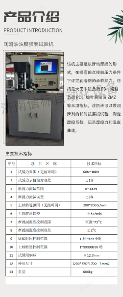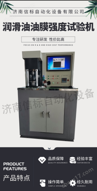 濟(jì)南信標(biāo)自動(dòng)化設(shè)備有限公司專業(yè)從事摩擦磨損、潤滑評(píng)定測試設(shè)備研制及試驗(yàn)技術(shù)的研究。主要生產(chǎn)四球摩擦試驗(yàn)機(jī)系列、端面摩損試驗(yàn)機(jī)系列、環(huán)塊摩擦磨損試驗(yàn)機(jī)系列、長時(shí)摩擦磨損試驗(yàn)機(jī)系列、滑動(dòng)軸承摩擦磨損試驗(yàn)機(jī)系列以及高溫、真空、腐蝕等特殊功能的摩擦磨損試驗(yàn)機(jī),共計(jì)三十多個(gè)規(guī)格品種,能夠有效模擬點(diǎn)、線、面等摩擦副形式,實(shí)現(xiàn)摩擦副對(duì)偶件的滾動(dòng)、滑動(dòng)、滾滑、間歇、往復(fù)、復(fù)合等多種運(yùn)動(dòng)形式。廣泛應(yīng)用于石化行業(yè),大專院校及摩擦學(xué)各個(gè)專業(yè)領(lǐng)域。 潤滑脂抗磨性能測試儀 一、 主要用途與適用范圍 該機(jī)主要是以滑動(dòng)摩擦的形式,在ji高的點(diǎn)接觸壓力條件下評(píng)定潤滑劑的承載能力。包括最大無卡咬負(fù)荷PB、燒結(jié)負(fù)荷PD、綜合磨損值ZMZ等三項(xiàng)指標(biāo)。該機(jī)還可以做潤滑劑的長時(shí)抗磨損試驗(yàn),測定摩擦系數(shù),記錄摩擦力和溫度曲線。