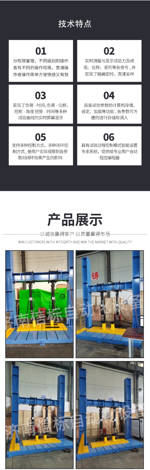 濟南信標自動化設備有限公司主要生產:動靜態萬能疲勞試驗機,接骨板彎曲試驗機,縫合線拉伸疲勞試驗機,髖膝關節磨損試驗機,電子萬能試驗機、液壓萬能試驗機、巖石三軸、四軸,電液拉力試驗機,材料試驗機,高低溫蠕變,高低頻疲勞,拉伸、扭轉、杯突等二十多個系列兩千多個的品種。